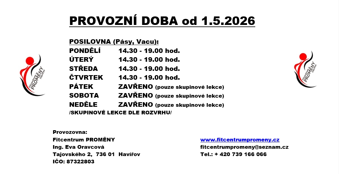 Provozní doba posilovny a VacuTherm/VacuBike: