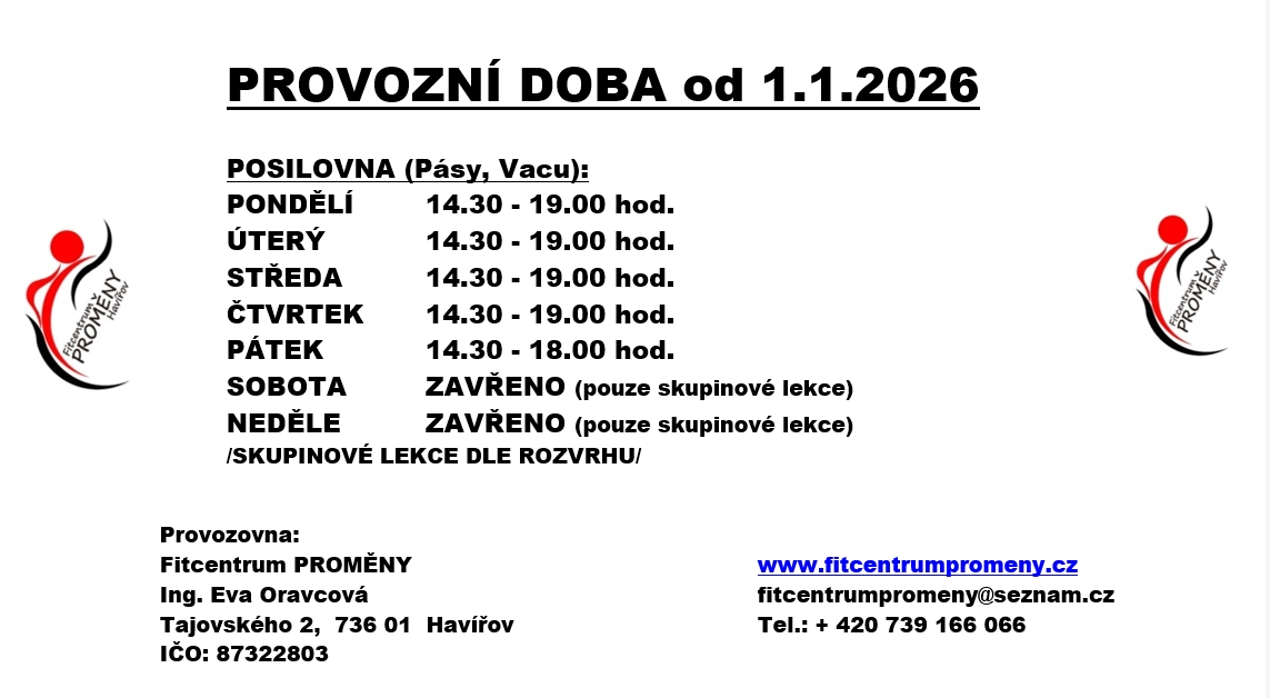 Provozní doba posilovny a VacuTherm/VacuBike: